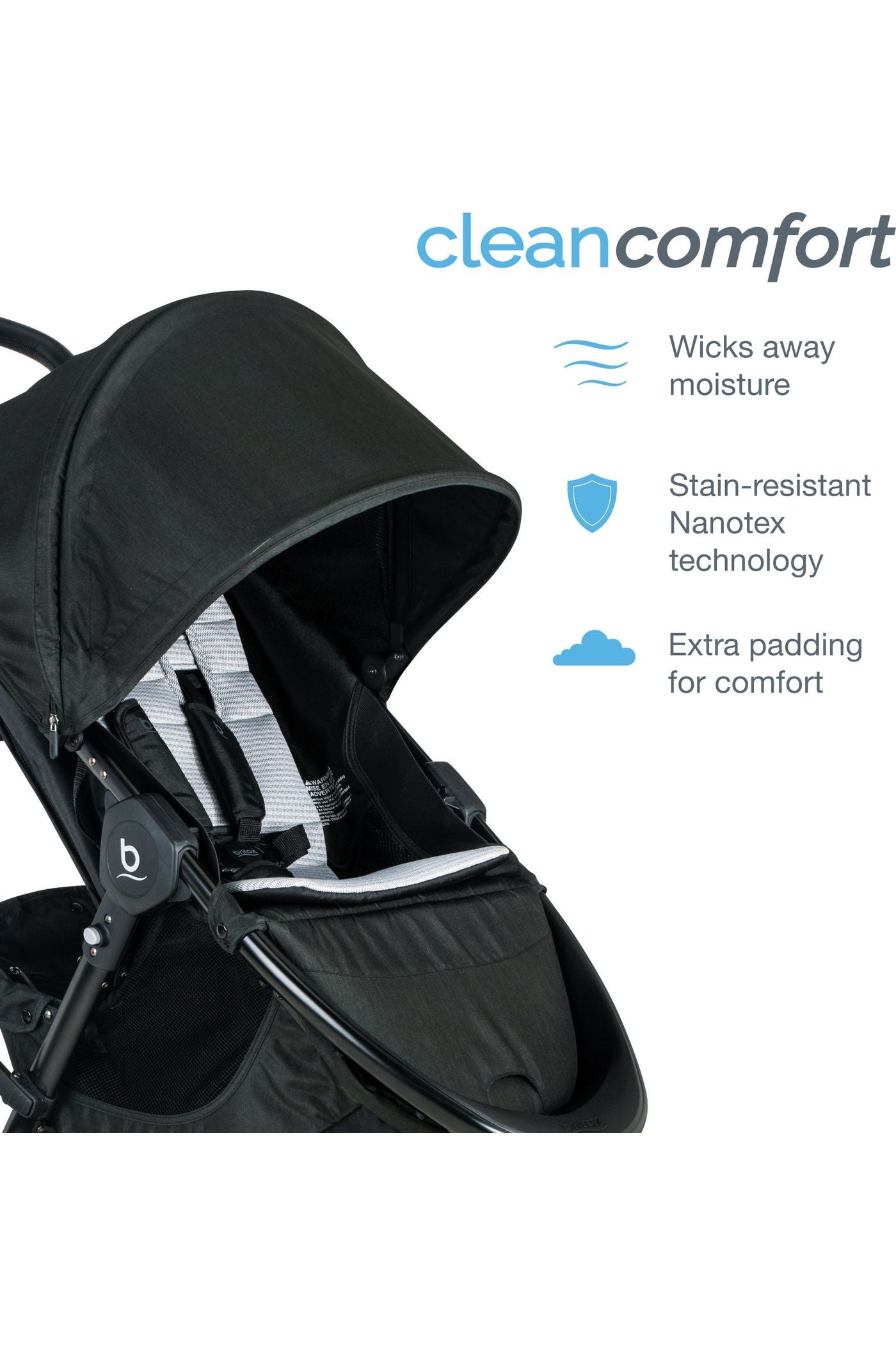 Diseñado con Nanotex de arriba a abajo, el cochecito resiste las manchas, la humedad y el olor.