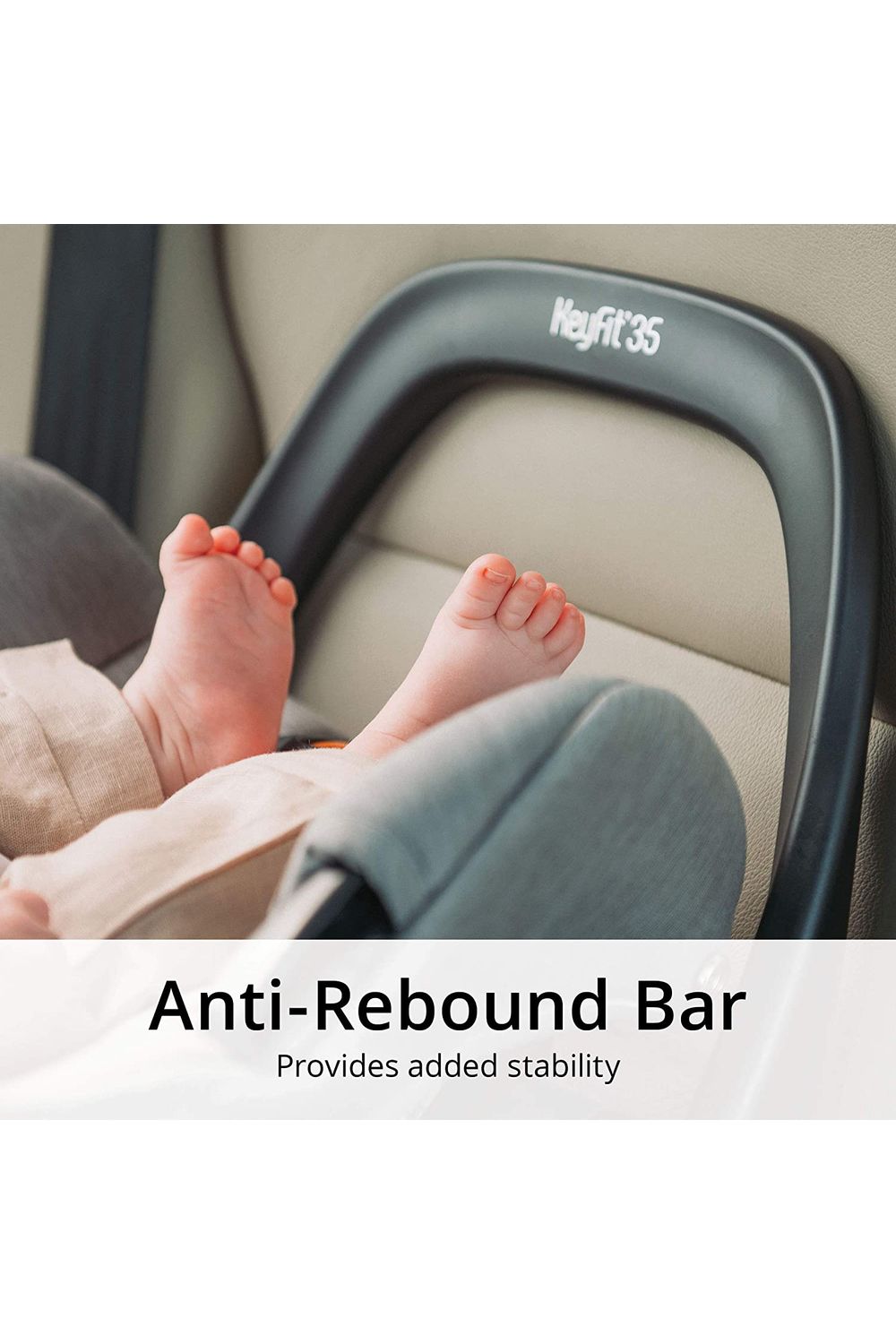 La barra anti-rebote integrada proporciona una mayor estabilidad para cada viaje al tiempo que ofrece un espacio extendido para las piernas para su bebé en crecimiento.