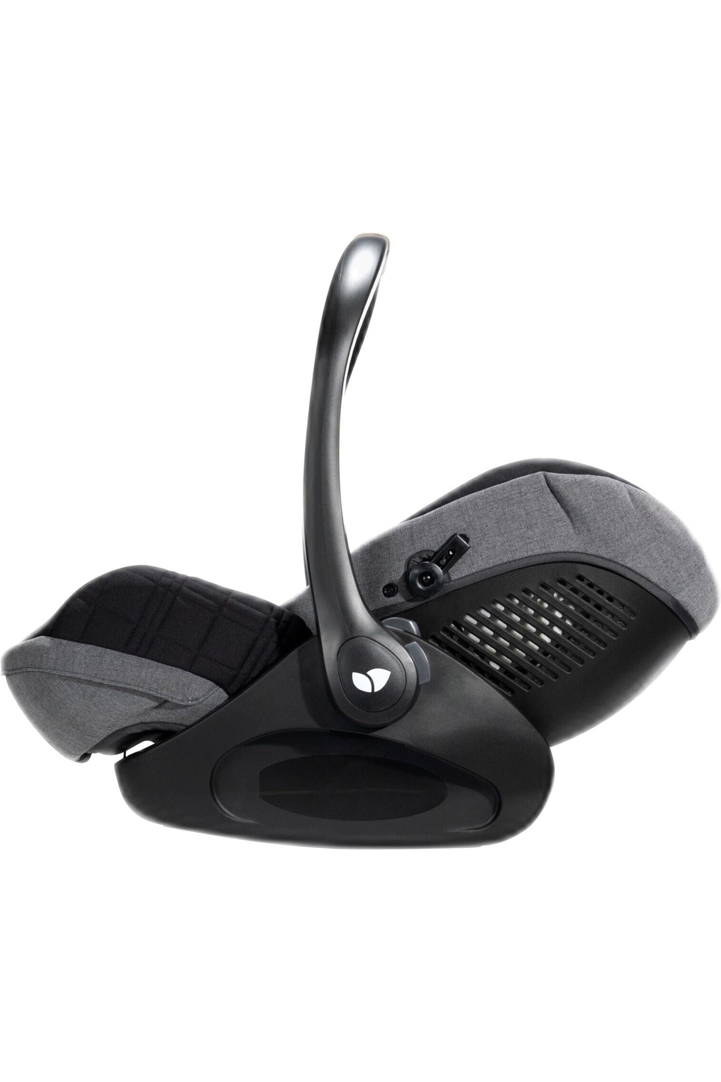 - Se convierte en una silla reclinable que puede usarse en el vehículo o en una silla de paseo.