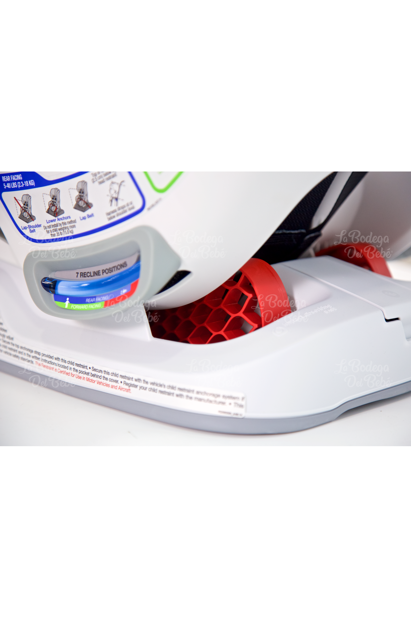 Instalación sencilla: la tecnología ClickTight patentada hace que la instalación del asiento del automóvil sea tan simple como abrocharse el cinturón de seguridad, aun asÍ cuenta con Sistema LATCH y TOP TETHER.
