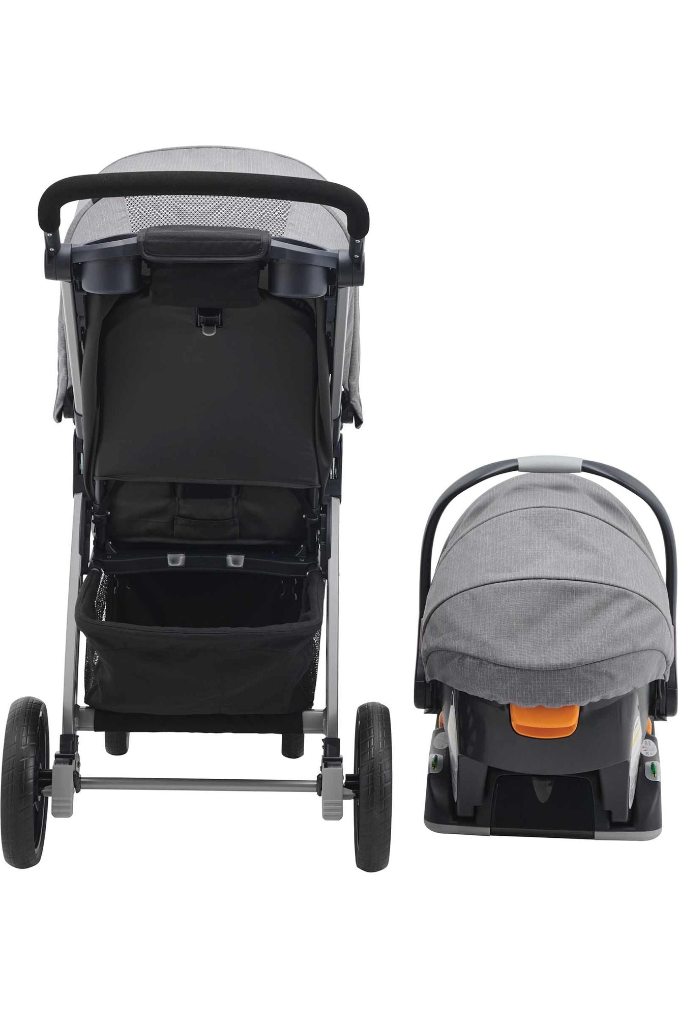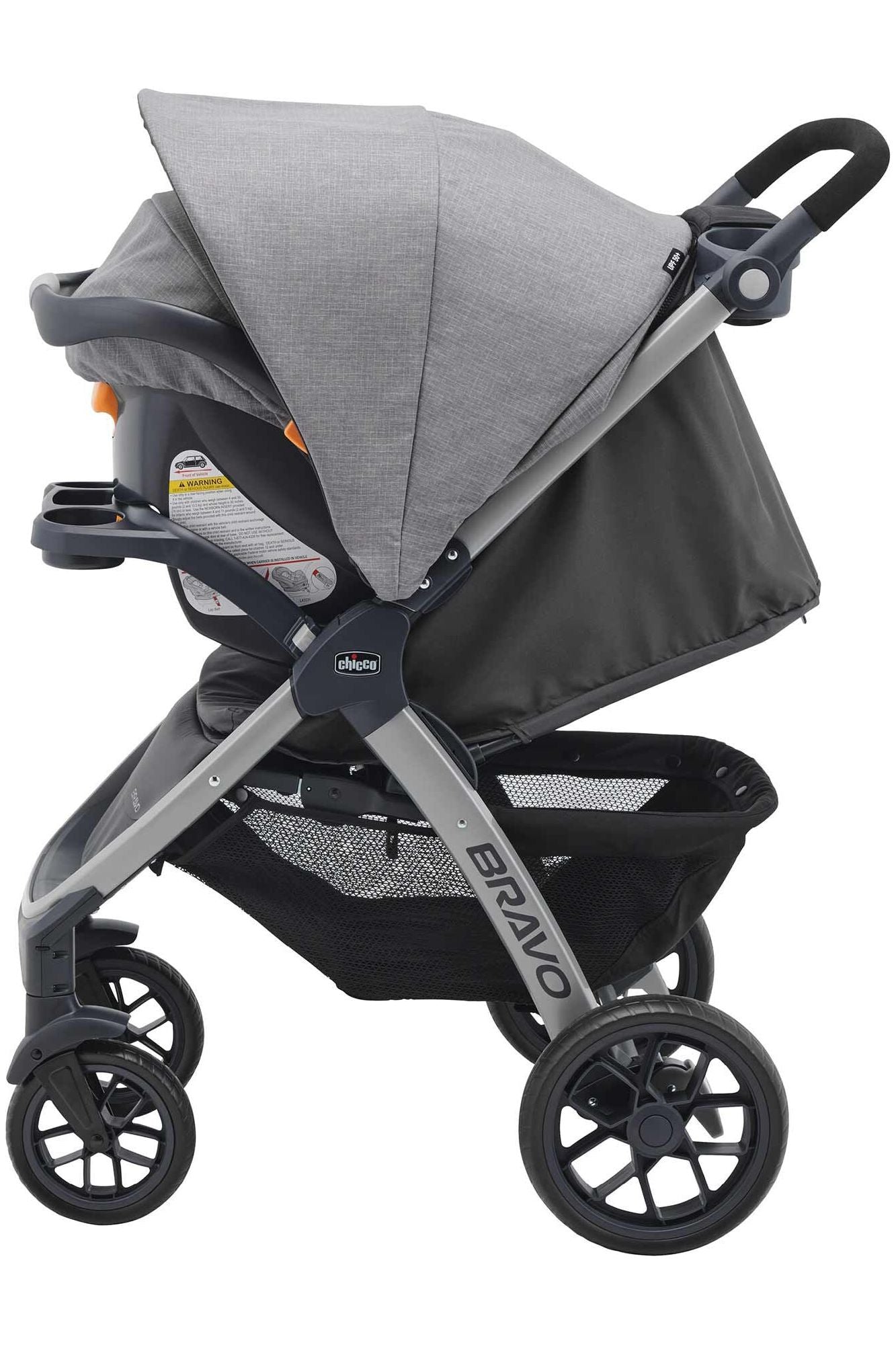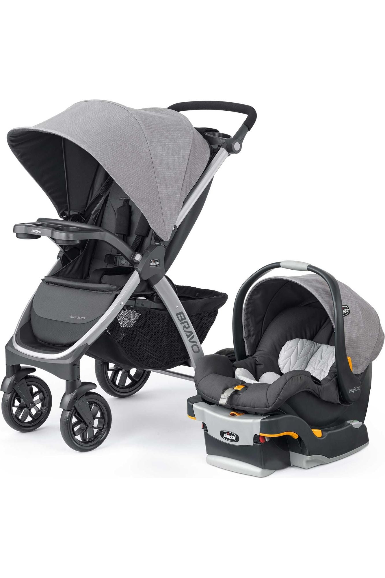 Portabebé KeyFit30: en su primer modo de uso con bebés, Bravo funciona como un porta Autoasiento, cuenta con base con Sistema Latch para anclar al automóvil. Es muy fácil retirar el asiento y la capota de la carriola para conectar el KeyFit al adaptador, haciendo un sonido de clic.
