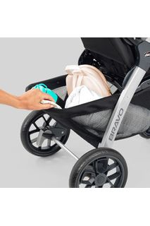Carriola de fácil plegado: Bravo también cuenta con el sistema de plegado más rápido e inteligente de su clase. Simplemente levanta la manija debajo del asiento y las ruedas delanteras girarán para quedar plegada y de pie por sí sola.